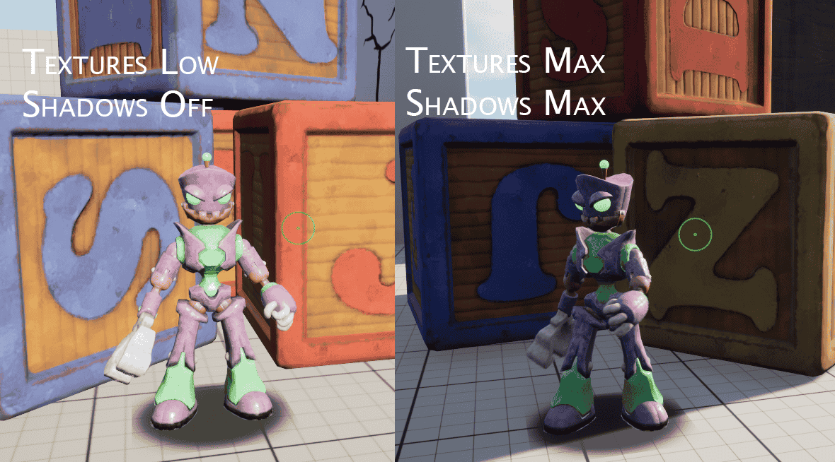 I later added the settings menu so there was a way to change the quality of the shadows and textures since we know our game can be very demanding